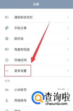 进入设置之后,找到更多设置,点击并进入,如图所示。