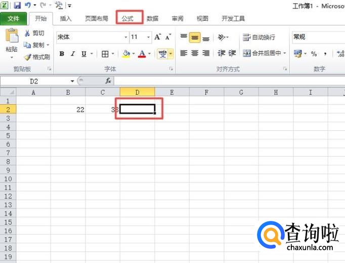 之后我们选中图示中单元格,然后点击工具栏中的公式;
