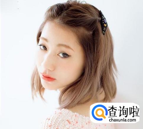 将刘海轻轻的扭转几下,发尾用发卡夹起来。