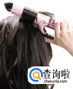 用卷发棒将尾部的头发稍微卷一下,让头发更蓬松。