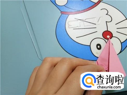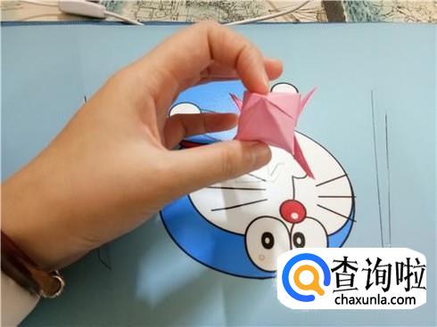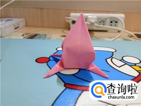 最后,我们将手指从下面开口的地方伸入,并且将它的四边都轻轻的扯开进行整理,这样一个出现在王母娘娘的蟠桃盛会上的仙桃就折好了。