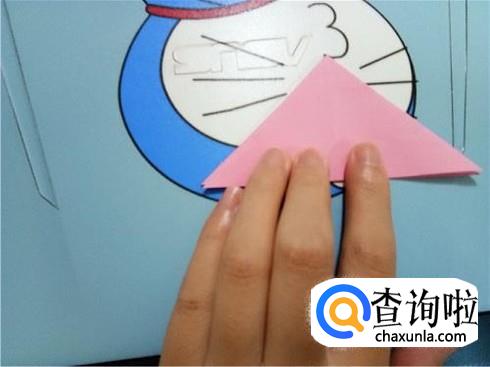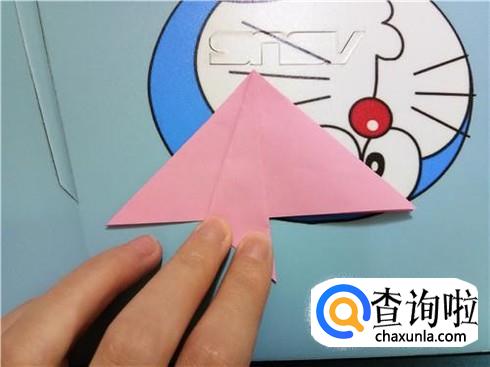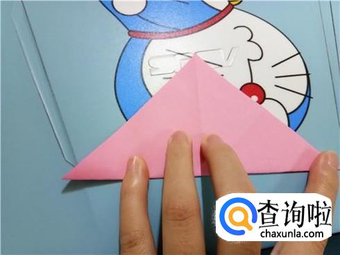 然后,我们将上面一层的三角形的最长边的两个角沿着中轴线折叠回来。两边成小的三角形。