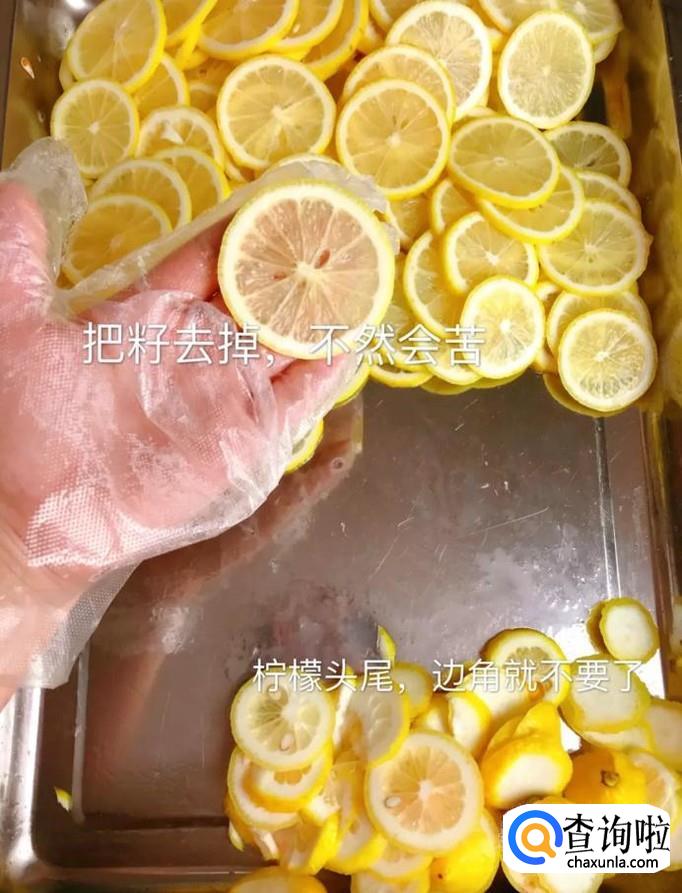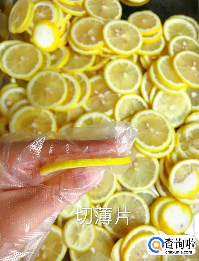 接着将洗干净的柠檬切成薄片,如下图所示。