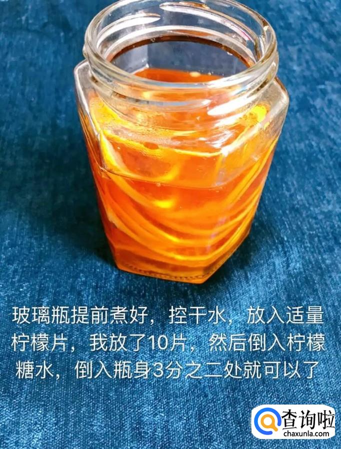 接着熬好柠檬膏装进瓶子中,大概装到2/3的位置就可以了。