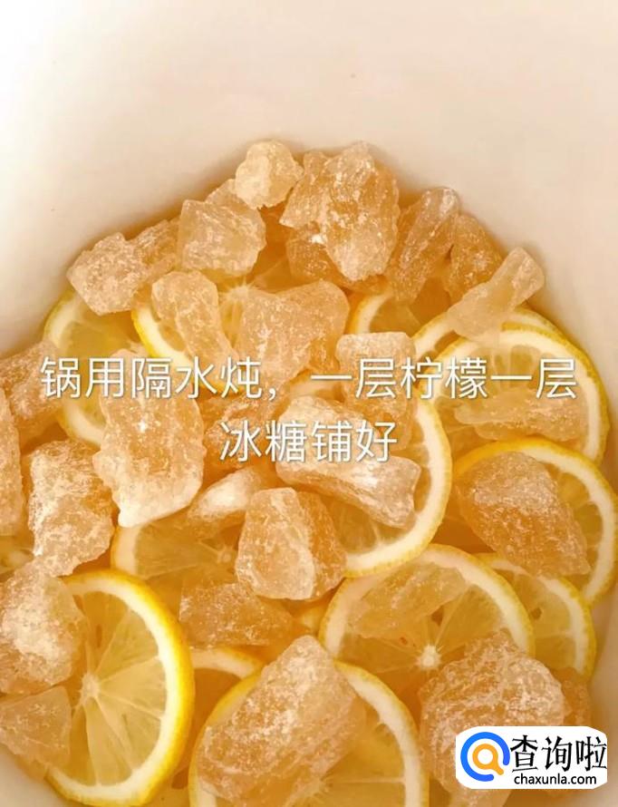 接着在锅中用一层柠檬一层冰糖的方式铺好,如下图所示。