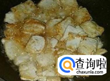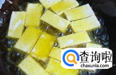 开火下油,放豆腐进去煎炸,炸至金黄色,然后放适量的盐、蒜米、姜蓉,生抽翻炒一下。