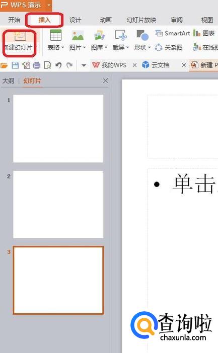 我们也可以点击菜单栏“插入”,点击“新建幻灯片”来插入下一页,如图所示,效果是一样的(新建的幻灯片会插入在选定幻灯片的后面)。