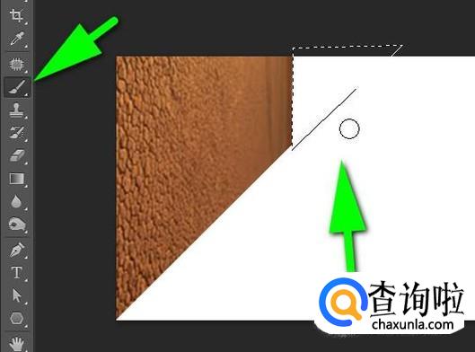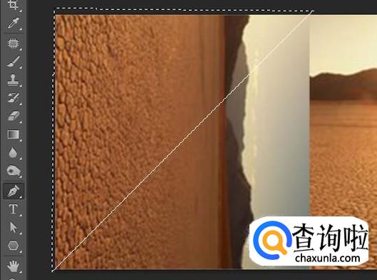接下来,如下图所示,把这一部分图像用钢笔工具绘制出路径并转为选区,再用画笔工具,把这一选区内的图像擦除。