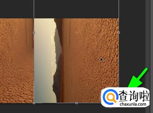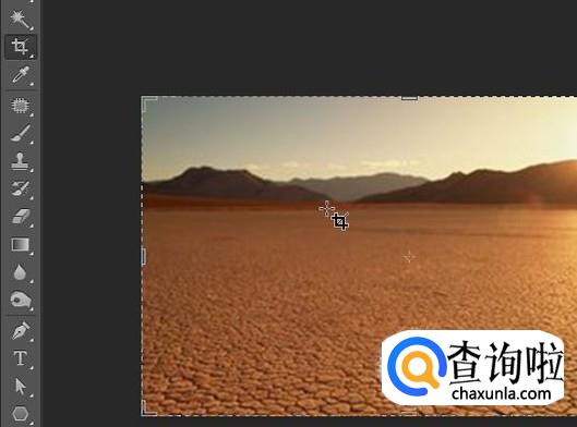 接下来,鼠标再在工具栏这里点击“裁剪”工具图标,调出裁剪工具;接着,什么也不用做,鼠标直接就在图片上双击,确认裁剪。再按V键,选择:移动工具。这就完成裁剪的操作。