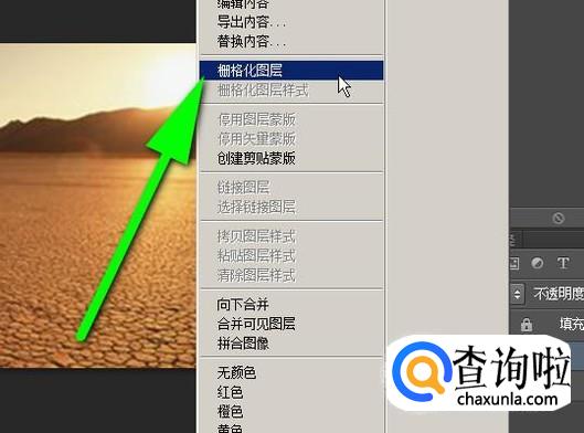 图片拖入到画布中,自动生成一个图片图层;现在的图层模式是智能对象,我们要把智能对象修改为栅格化图层。右击图层,弹出菜单选择:栅格化图层。