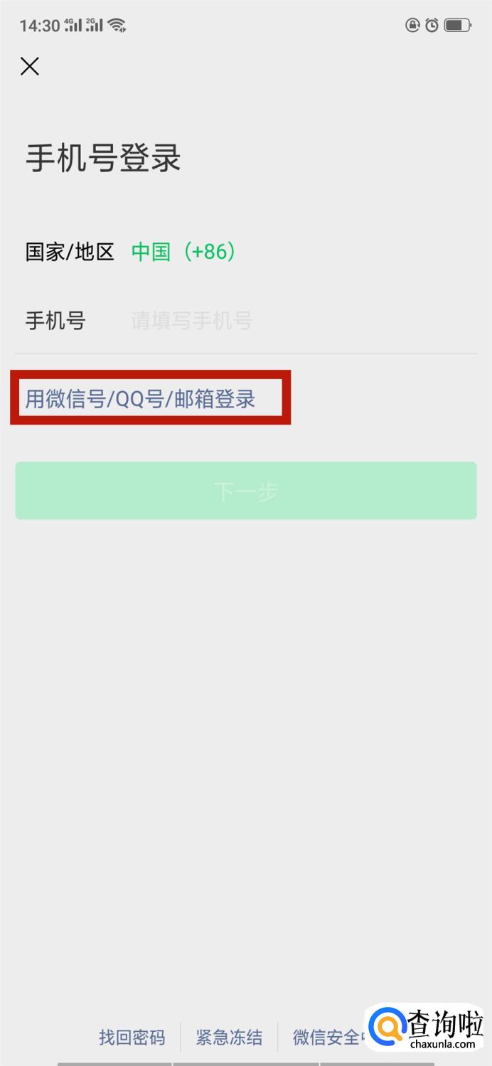 返回登录界面后,下方会出现用“微信号/QQ号/邮箱登录”,选择这个选项。