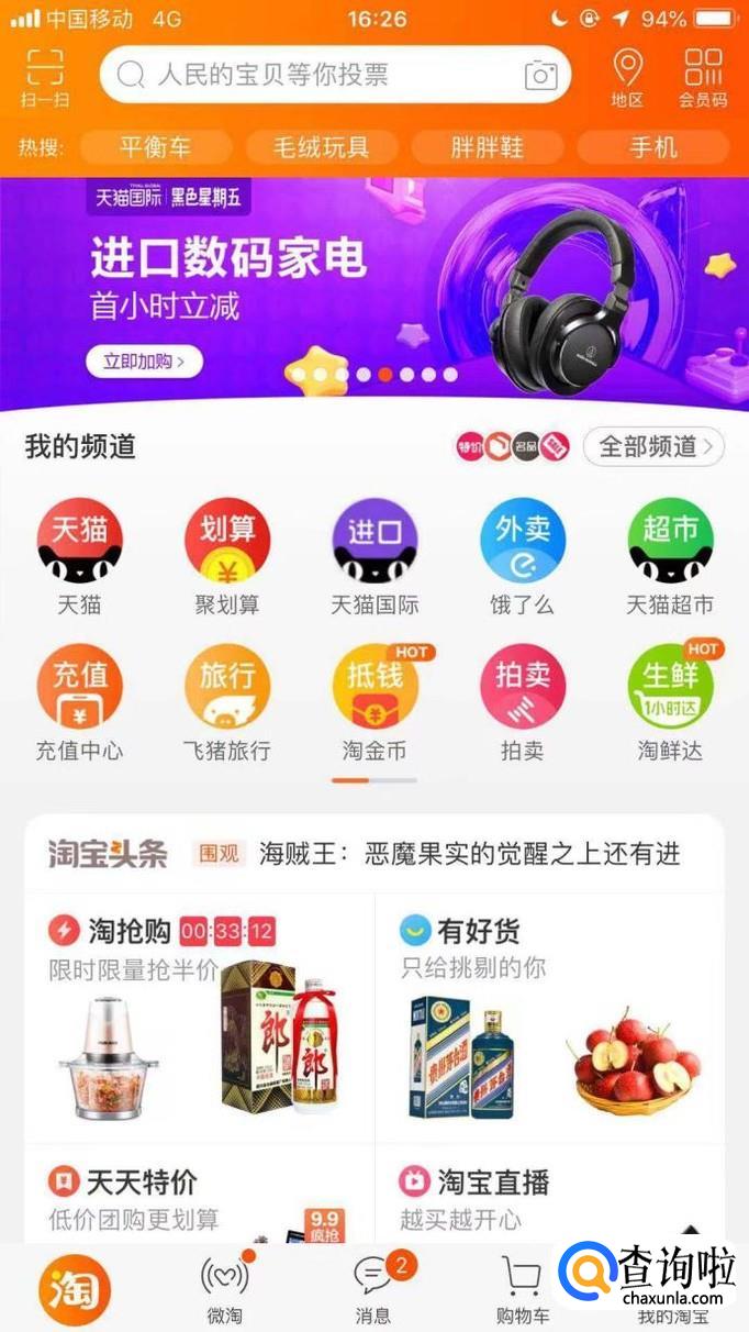 首先点击手机淘宝,如下图所示。
