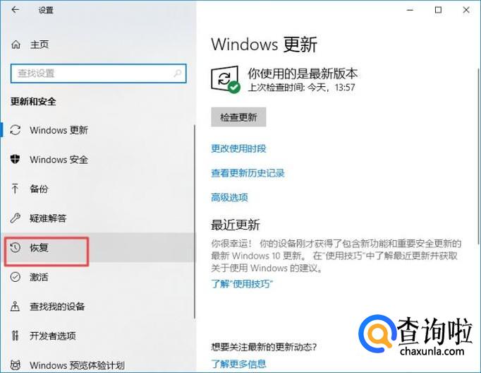 弹出的界面,我们点击恢复;