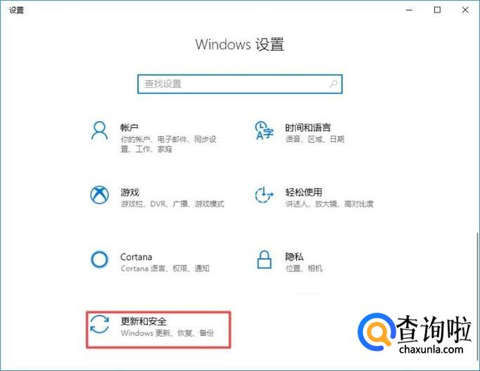进入设置之后,我们点击更新和安全;