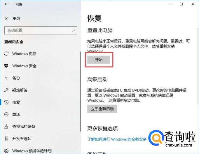 之后我们点击重置此电脑中的开始;