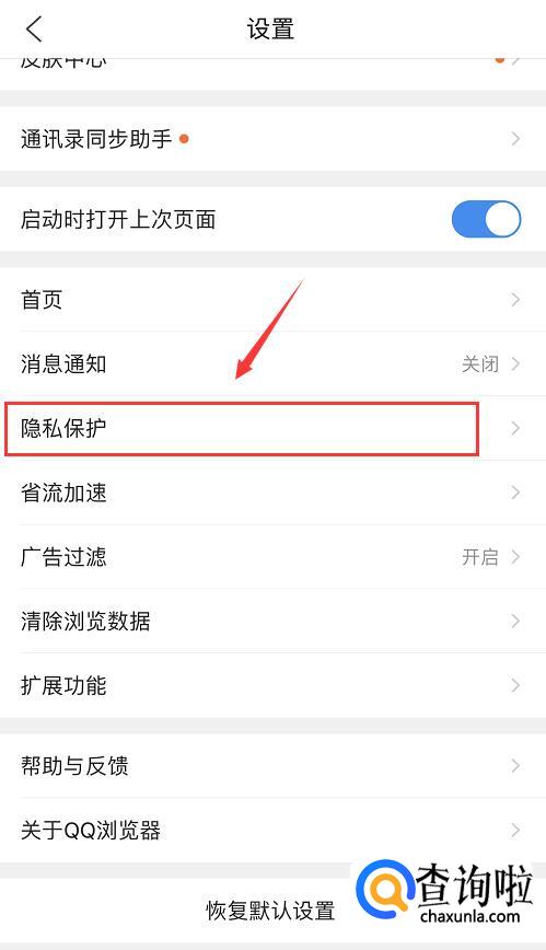 进入设置页面后,将页面下滑到底部,在列表中找到【隐私保护】,点击一下。