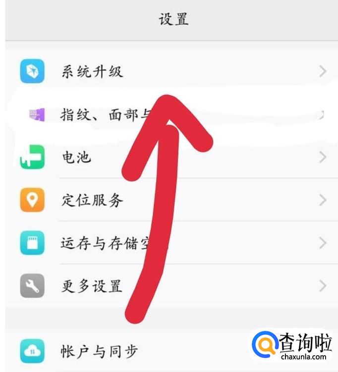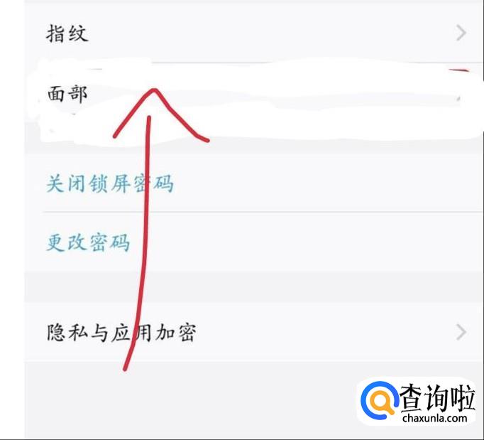 在里面找到指纹面部与密码,如图1箭头所示。点击,会进入一个新的界面,如图2所示。再点击面部,如图3箭头所示。
