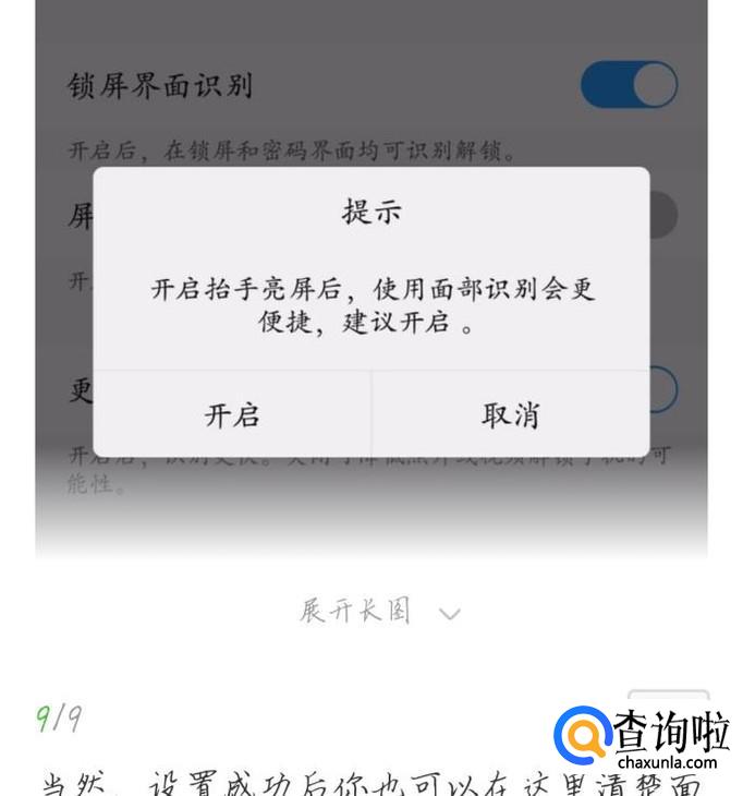 会出现一个负责声明,请仔细看完,能提高成功率。如图1所示。接着按照它的提示就可以了。会出现一个提示,抬手亮屏会更加方便。