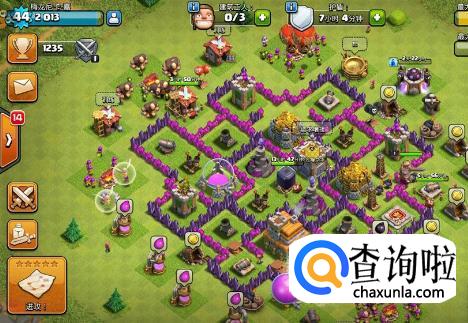 这个阵型虽然是个不规则的阵型,但是用来守护资源还是不错的阵型,再加上科技和城墙的等级都非常高,从资源的显示来看效果非常不错。