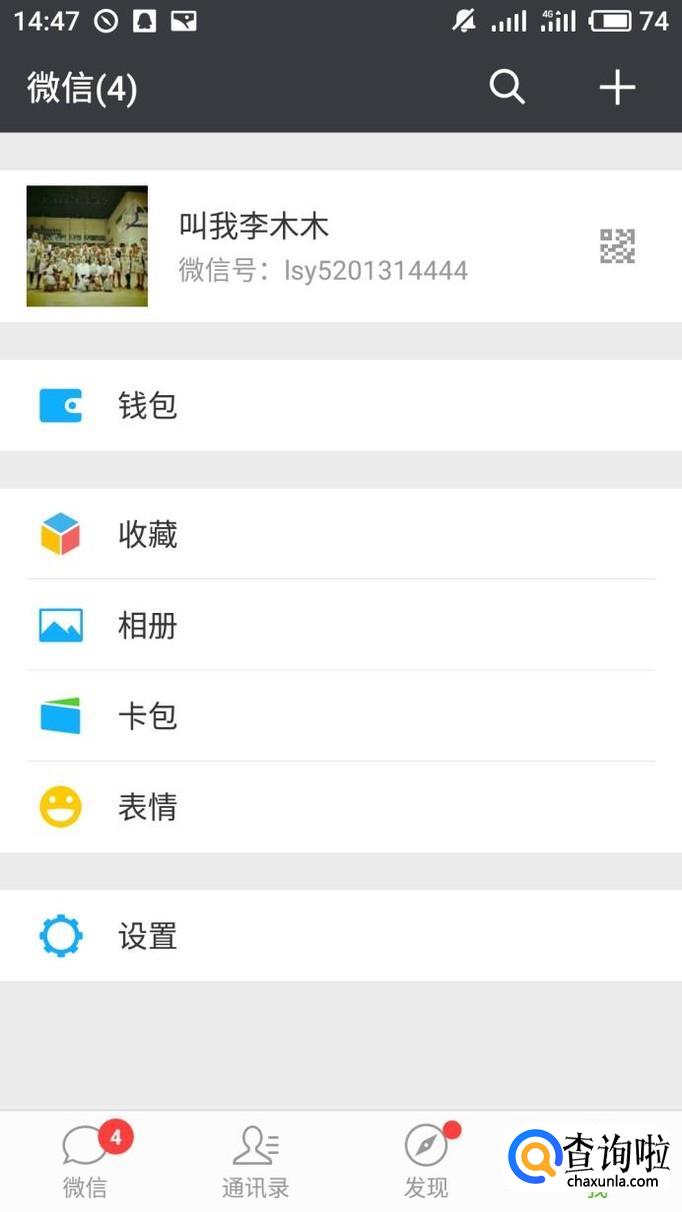 点击打开微信进入微信主页,进入主页以后进入点击我进入我的主页。
