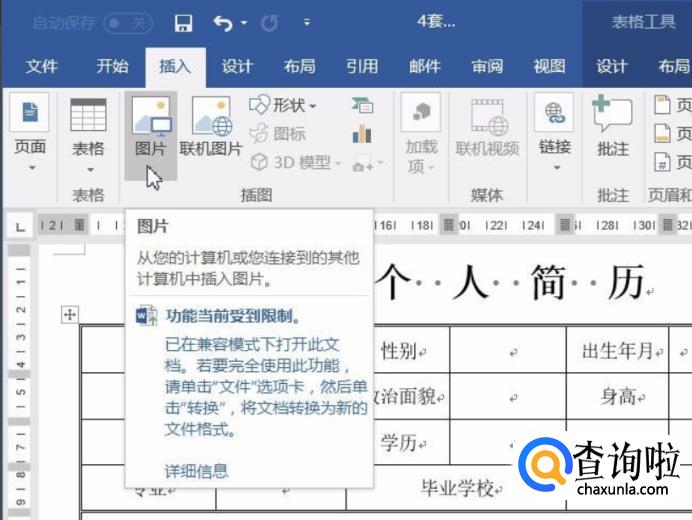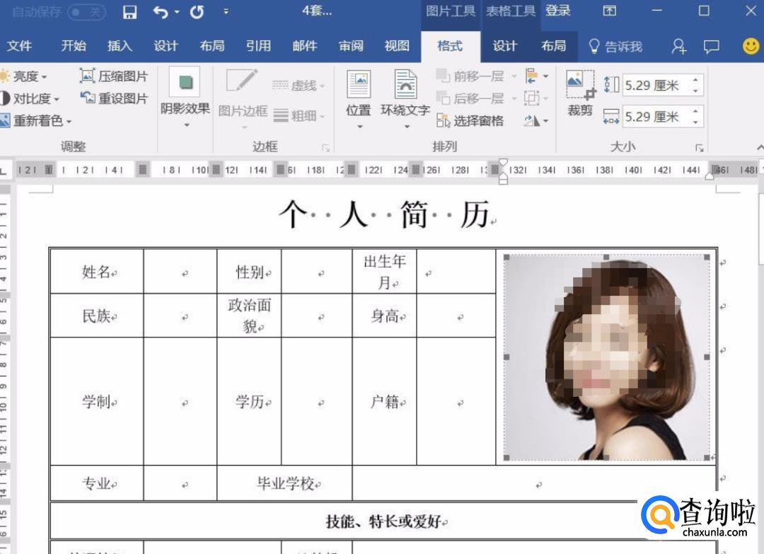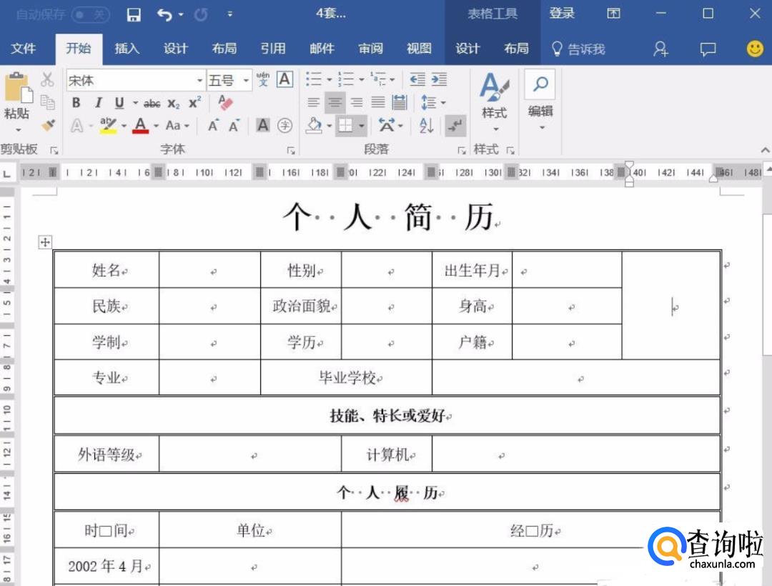 打开已经制作完成了简历表格文档。