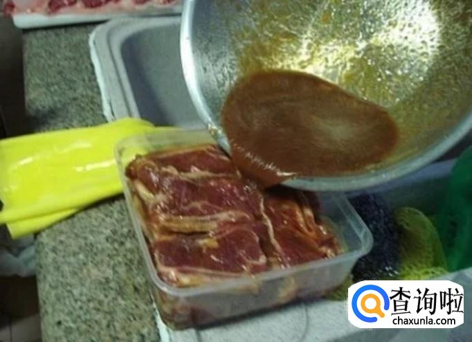 用生粉和红糖抹在肉片上面,然后腌制半个小时。