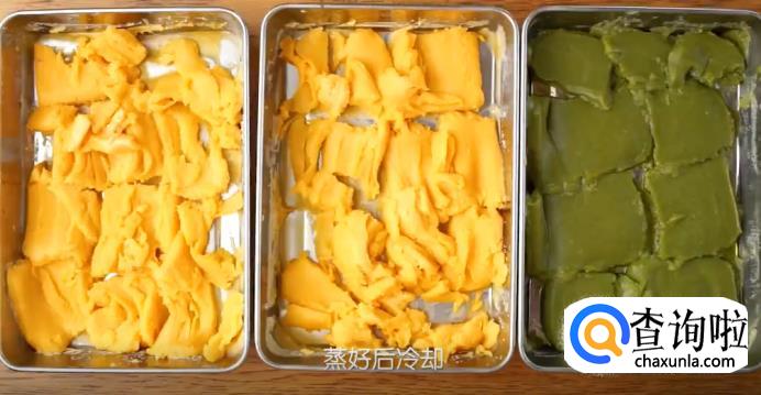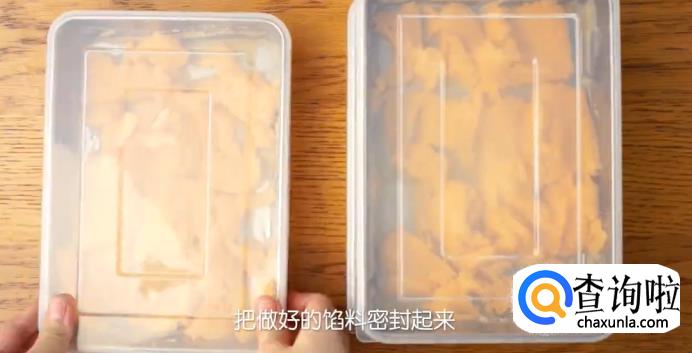 蒸好后放置在一旁冷却,完全冷却之后,把做好的馅料密封起来,放入冰箱冷藏半个小时以上。