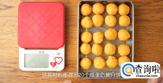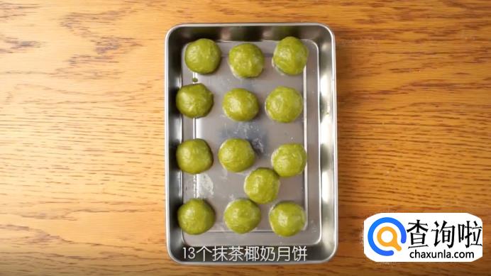 然后,再把抹茶椰奶馅和咸蛋奶黄馅分成20g一个的小球,这些材料大概能做出20个咸蛋奶黄月饼和13个抹茶椰奶月饼。