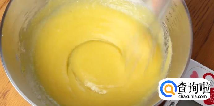 首先,加入20g软化的黄油,加入60g白砂糖、30g蛋液,一起混合均匀。再加入40g淡奶、75g炼乳继续混合。接着,加入5g吉士粉、5g玉米淀粉、2g奶粉和6g糕粉,一起搅拌均匀。
