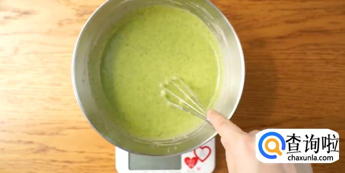 接着,放入60g炼乳、20g淡奶和70g椰浆,一起混合搅拌。再加入5g吉士粉、10g糕粉和8g玉米淀粉,再过筛1.5g抹茶粉拌匀。虽然现在看起来还有不少颗粒,但是制作成馅的时候就没有了。