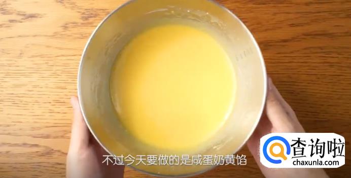 【咸蛋奶黄馅】黄油20g、白砂糖60g、蛋液30g、炼乳75g、吉士粉5g、糕粉6g、玉米淀粉5g、奶粉2g、咸蛋黄80g、淡奶190g(40g和150g分开装)