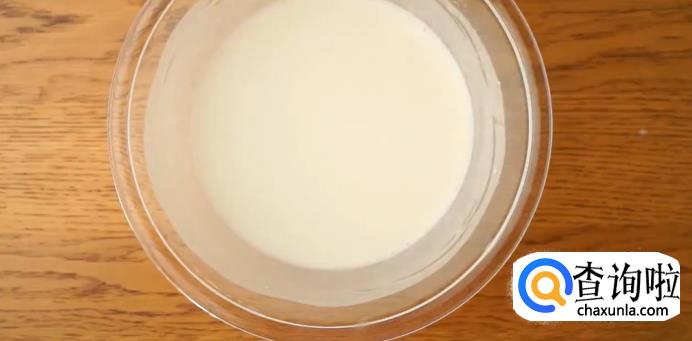 在冷藏的时间里,我们可以来制作冰皮。首先,把280g牛奶和40g食用油混合均匀,一定要用淡味植物油,一定要杜绝橄榄油或者茶油味冰皮的出现。