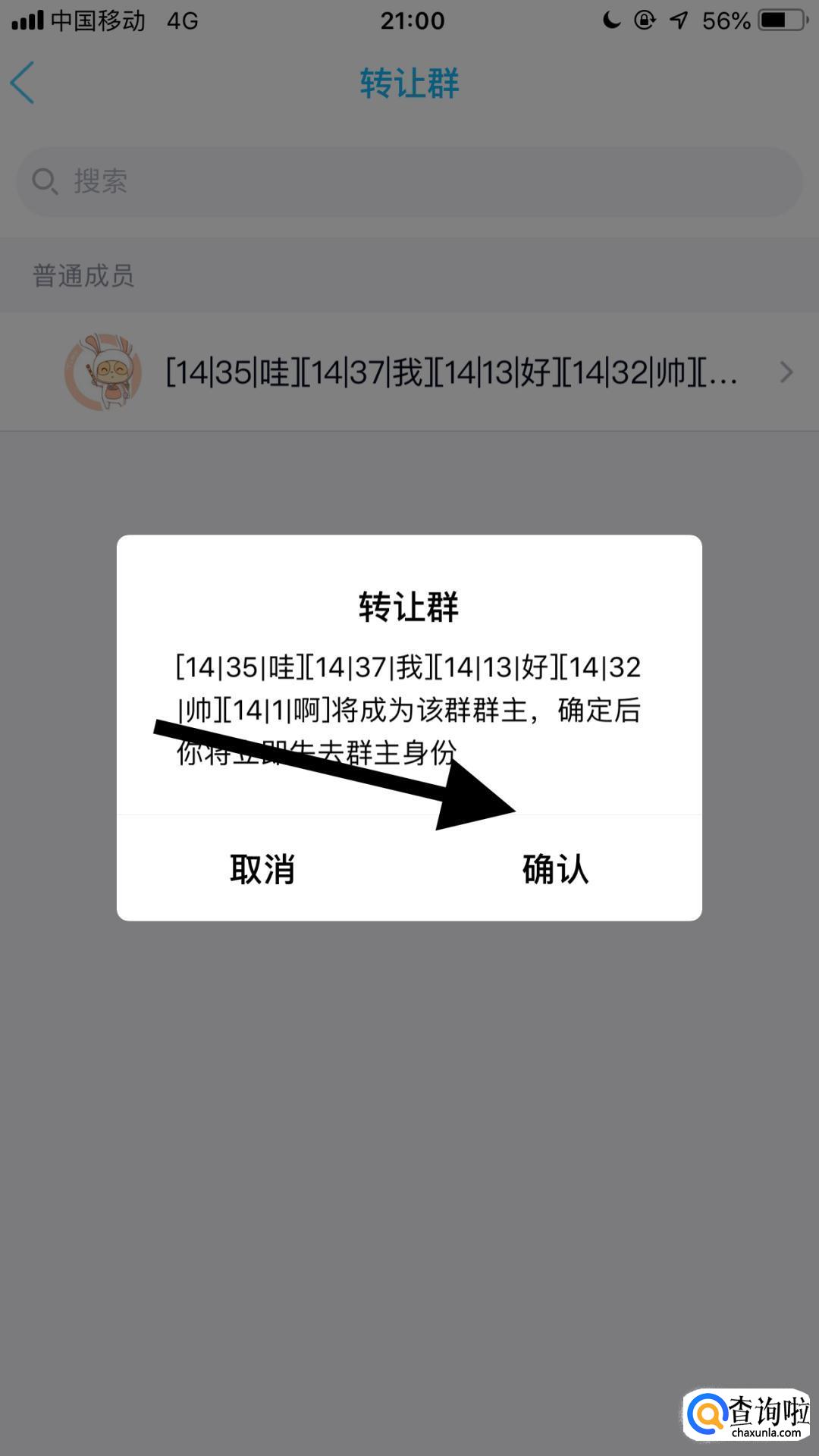 接着点击一个要转让的群成员。