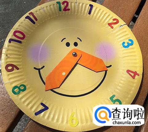 拿出生日剩下的纸盘,涂上自己喜欢的颜色,用彩色笔写上炫彩的时间,然后用彩纸剪出胖胖的指针,真的好喜欢哦!