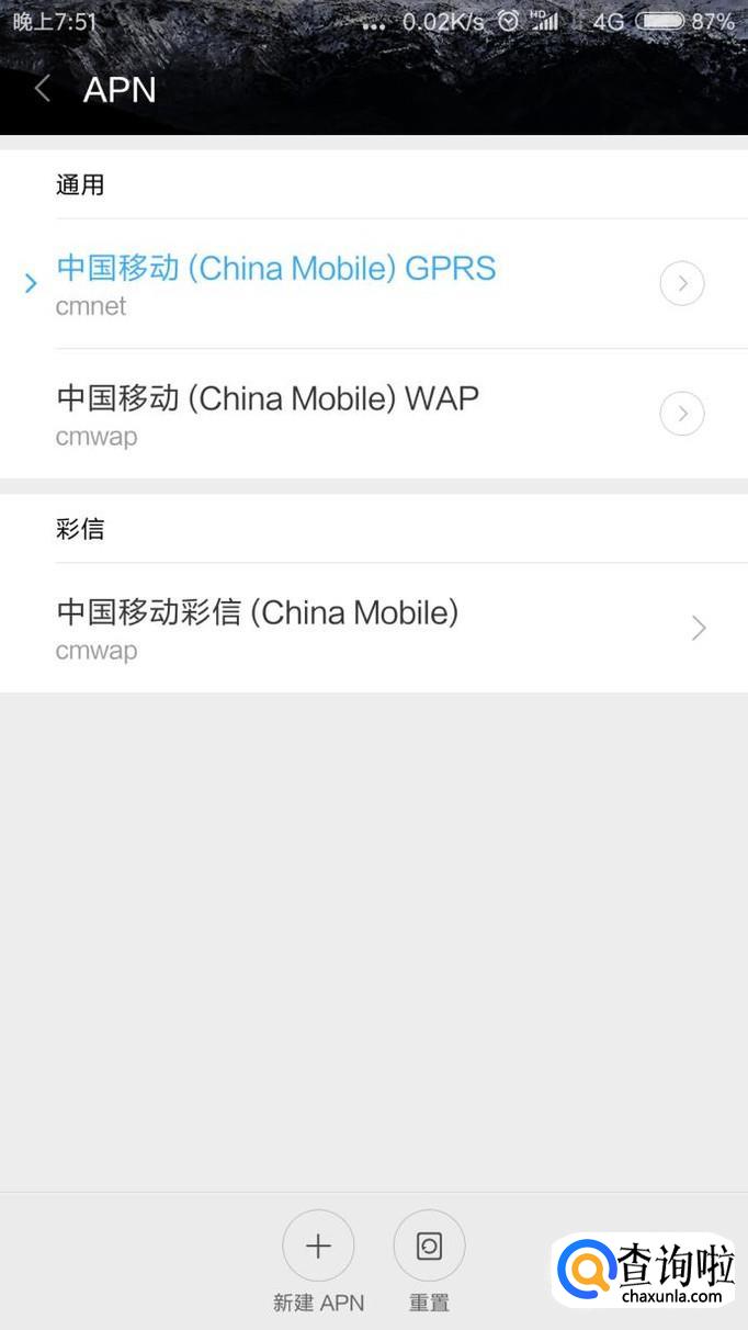 在通用中选择GPRS(cmnet),点击旁边的右箭头