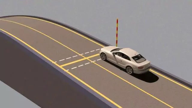 4、倒车入库,注意两个前车轮要压过虚线才能开始倒车。