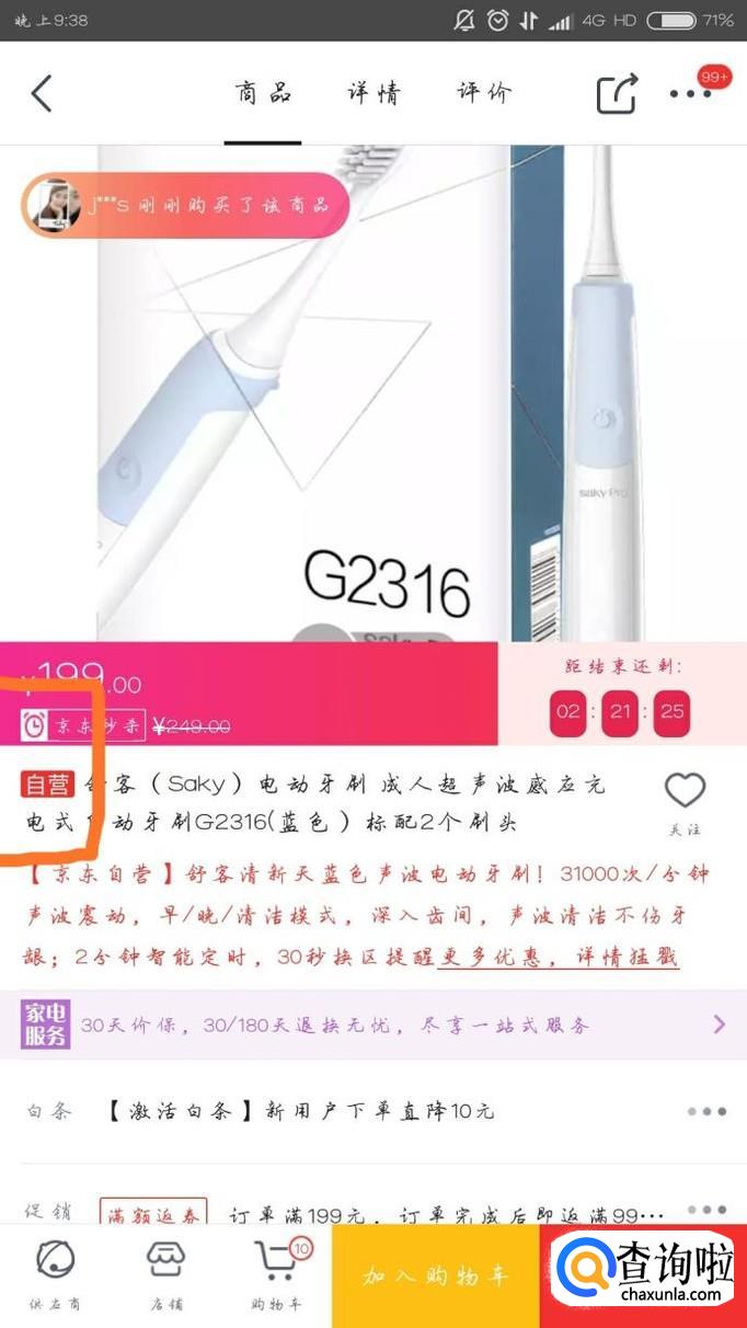 当你点开商品的具体页面的时候,你也能在商品详情下看到“自营”的标志,以此就可以区分和辨认自营商品了