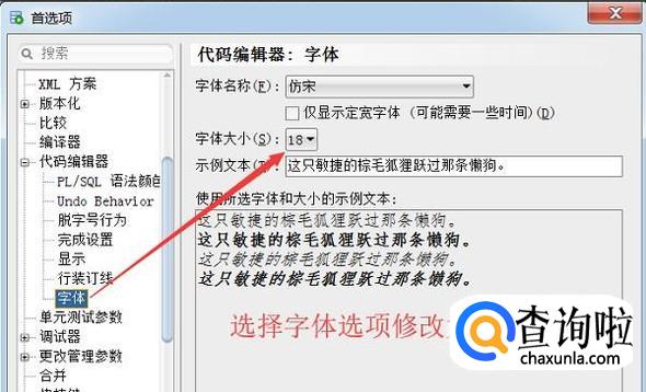 然后选择代码编辑器下面的字体选项,接着在右侧更改字体大小,如下图所示