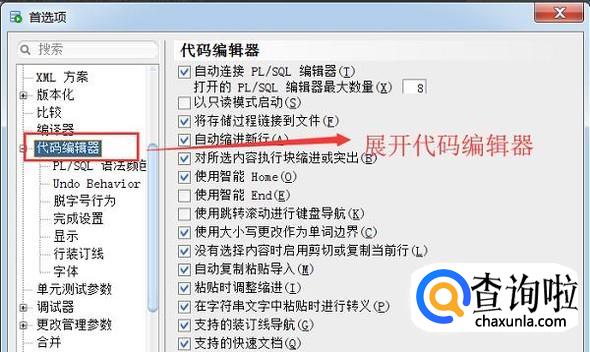 接下来在弹出的首选项界面中我们展开代码编辑器折叠内容,如下图所示