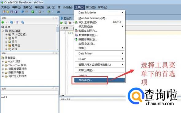 首先打开PLSQLDeveloper软件,点击顶部的工具菜单,然后选择下面的首选项,如下图所示