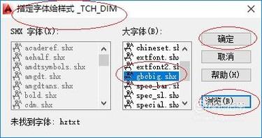如图所示,若字体仍无法正常显示。下载所需字体库存放到CAD字体目录中,点击对话框"浏览"按钮加载。