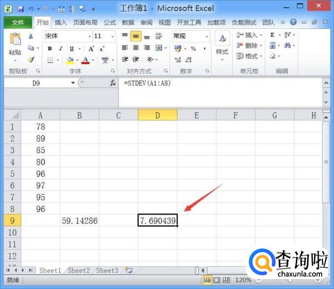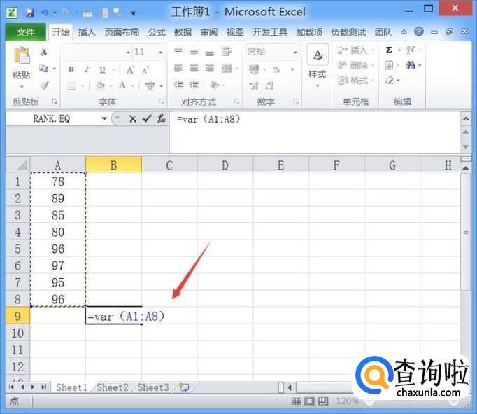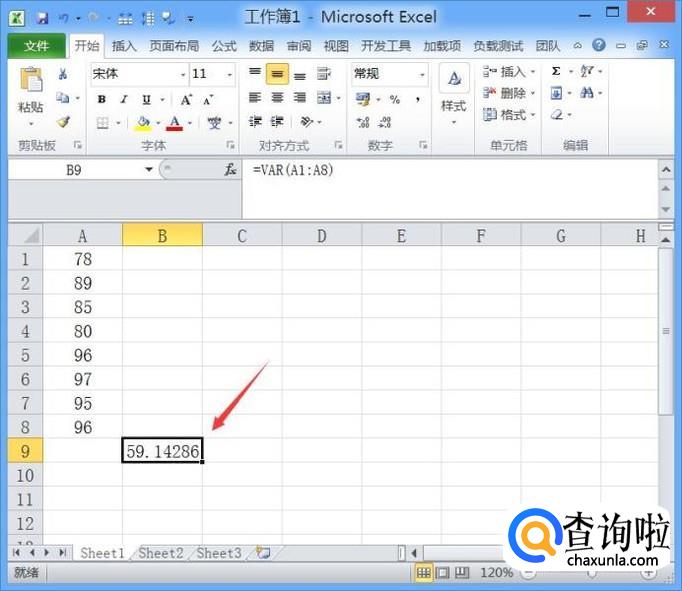 输入好参数之后按下回车键我们就得到了方差的计算结果了,如图所示: