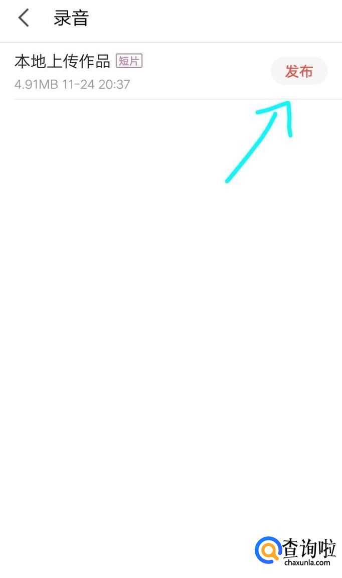 打开录音后可以看到刚才编辑完成的短视频(mv),我们点击上传,如下图。