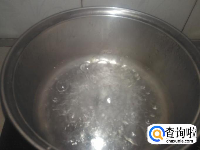 用小锅装2碗水煮沸。