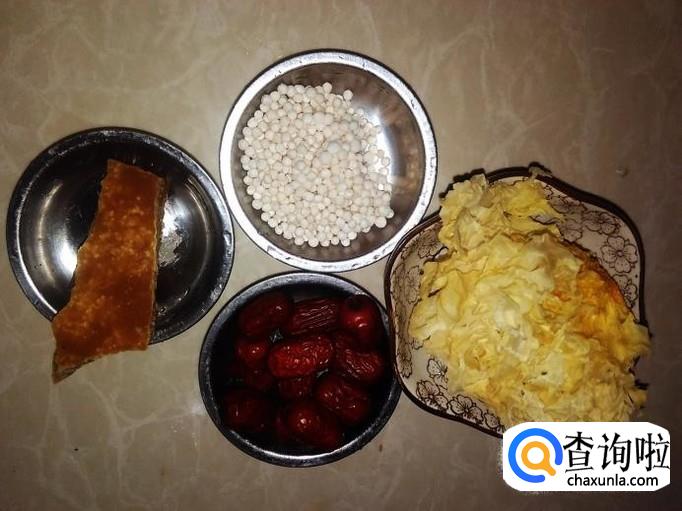 雪耳、西米、红枣、红糖准备好。