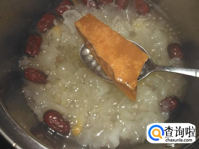 雪耳30克,红枣30克,西米30克,土红糖30克。