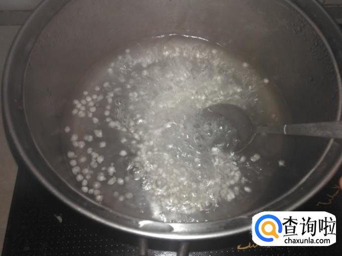 放西米进去,然后用勺子搅拌一下,不给粘底。