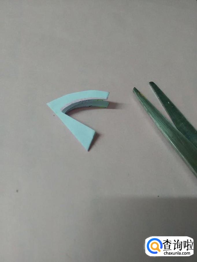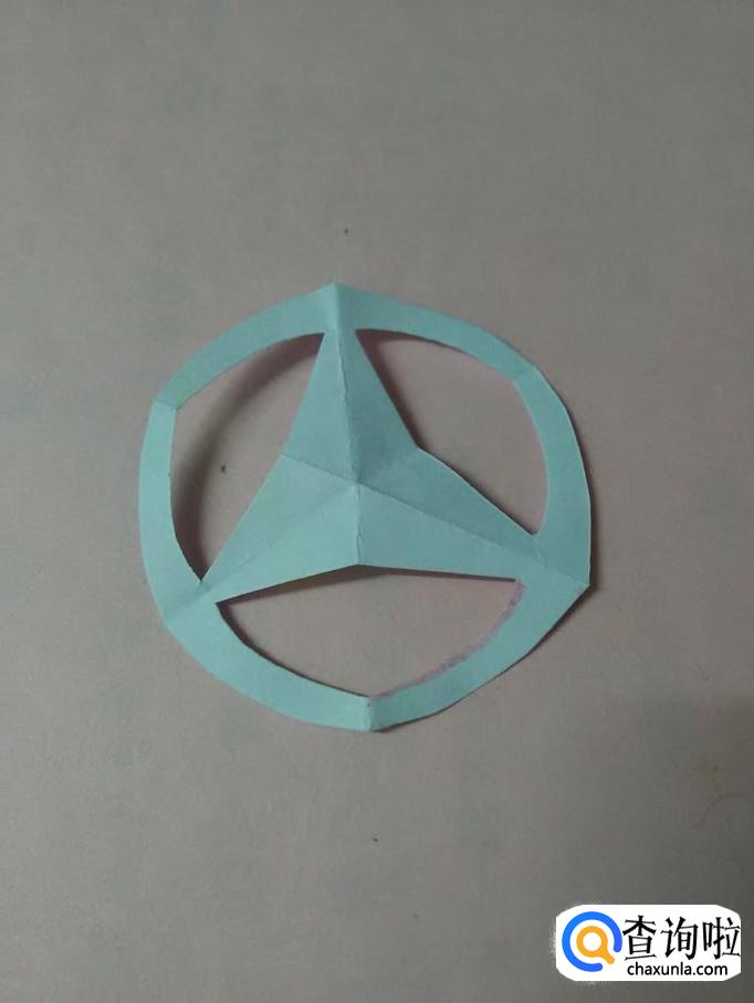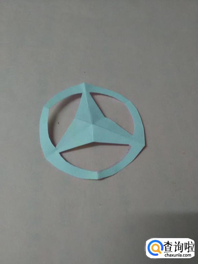 把纸打开,就是一个带圆环的三角星。三折剪纸就完成了。