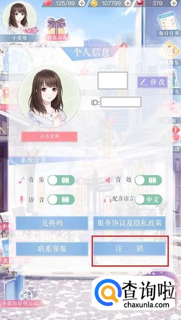 在个人信息界面,点击右下角的“注销”键。