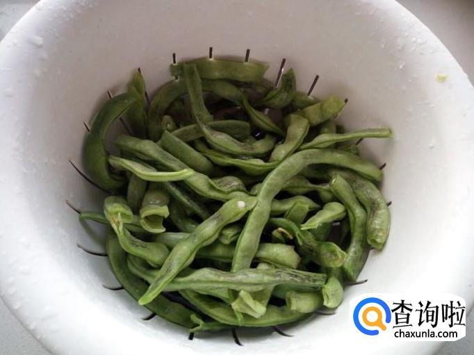 芸豆摘干净,放入清水中浸泡一下,然后用水清洗干净,控干水分,备用。